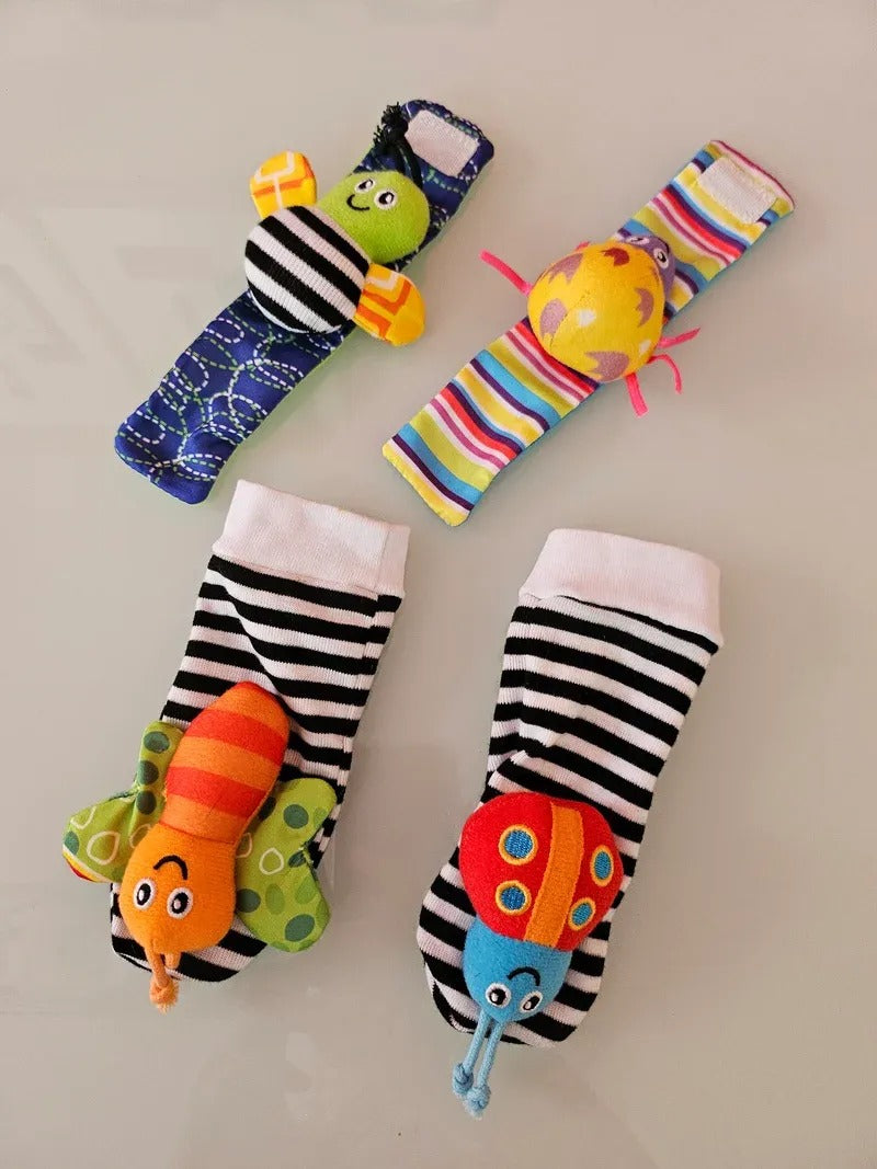 Mi bebé ama estas medias y manillas con sonajeos.