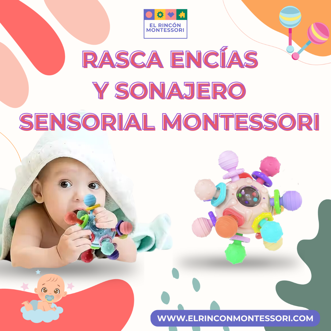 Prueba nuestro Sonajero Sensorial Montessori, ¡diseñado para mentes curiosas y encías inquietas! 🧠💤