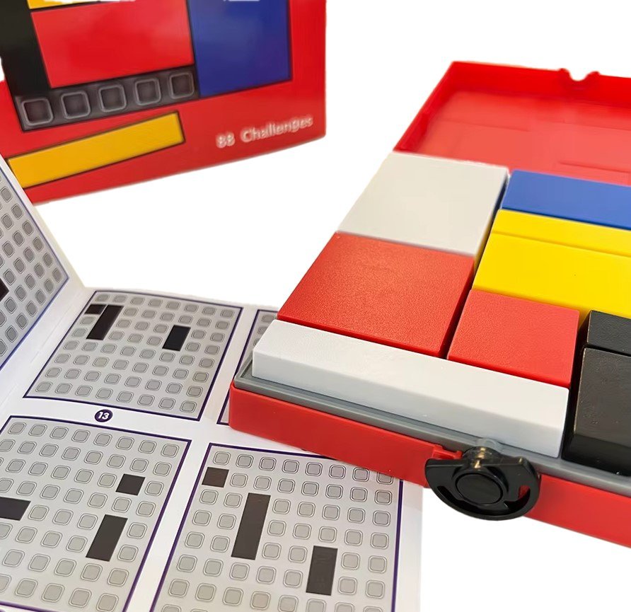 Incluye: Tablero, 11 bloques, libro de desafíos, caja