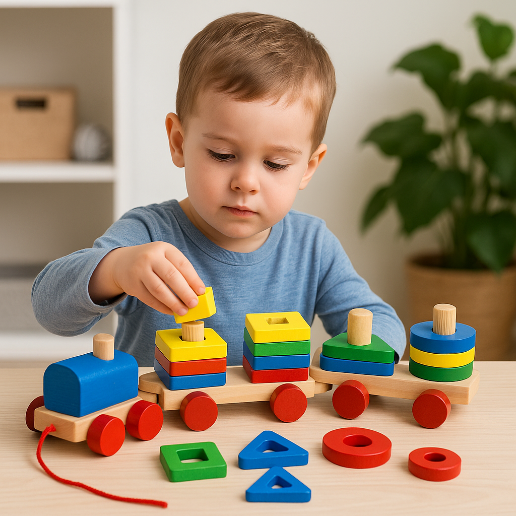 🚂 El Tren De Madera Didáctico combina juego y aprendizaje. Con fichas encajables de colores brillantes, ayuda a mejorar la coordinación ojo-mano y el reconocimiento de formas.🤲
